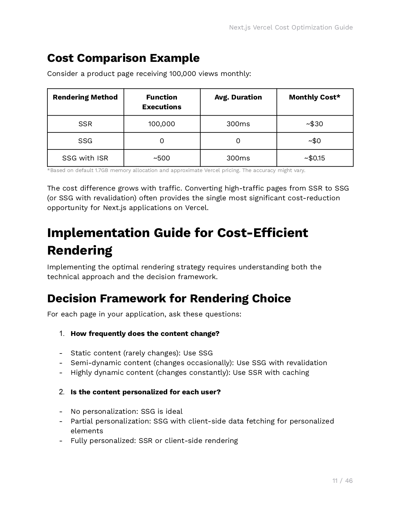 Smarter Rendering, Smaller Bills: Lower costs on high-traffic pages by up to 95% through strategic use of SSG, SSR, or ISR.